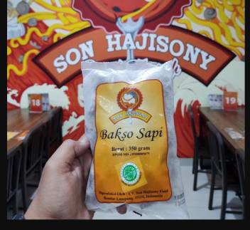 J: Satu bungkus bakso Sony frozen ukuran kecil standar berisi sekitar 27 hingga 30 butir bakso dengan berat bersih 350 gram, sudah termasuk bumbu kuah dalam sachet terpisah. Kemasan sedang 500 gram berisi 40-45 butir, dan kemasan besar 750 gram berisi 45-50 butir bakso tergantung ukuran dan jenis variannya.