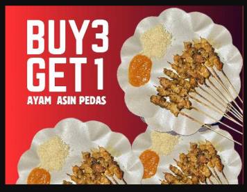 - Beli 2 Sate Ayam Asin/Asin Pedas: Gratis 1 Es Teh Manis